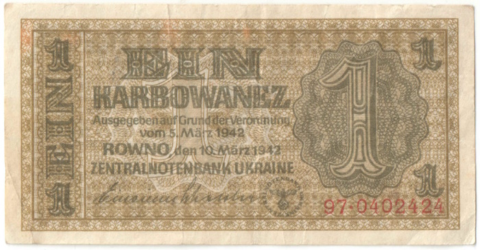 Бона 1 карбованец 1942 года Ровно арт 33400 мы доставляем в любую точку России.