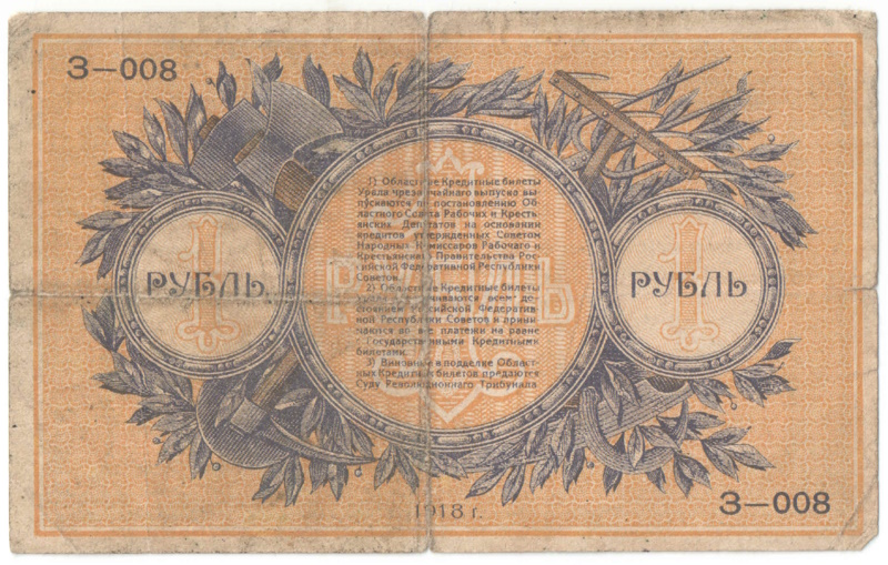Советская власть в Екатеринбурге была установлена одновременно с Петроградом, однако из-за удалённости территории возникали трудности со снабжением денежной массой, особенно из-за усиливающейся инфляции. Поэтому Екатеринбургскому отделению Государственного банка было разрешено выпускать в обращение собственные денежные знаки, однако они не получили широкого распространения.