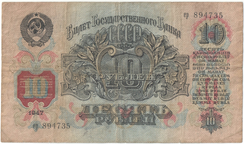 Бона 10 рублей 1947 года арт 33321 мы доставляем в любую точку России.