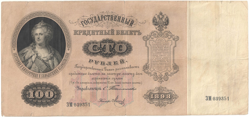 Мы отправляем Бона 100 рублей 1898 года арт 33392 Почтой РФ или курьерской службой.