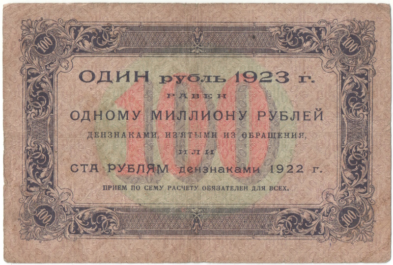 Введены в марте 1923 года в ходе деноминации (новый рубль обменивался на 100 рублей образца 1922), при этом купюры 1922 года продолжали хождение до осени, когда вышли денежные знаки 1923 года нового типа (с изменённой надписью оборотной стороны).