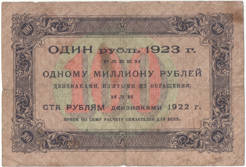 Введены в марте 1923 года в ходе деноминации (новый рубль обменивался на 100 рублей образца 1922), при этом купюры 1922 года продолжали хождение до осени, когда вышли денежные знаки 1923 года нового типа (с изменённой надписью оборотной стороны).