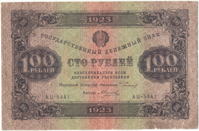 Введены в марте 1923 года в ходе деноминации (новый рубль обменивался на 100 рублей образца 1922), при этом купюры 1922 года продолжали хождение до осени, когда вышли денежные знаки 1923 года нового типа (с изменённой надписью оборотной стороны).