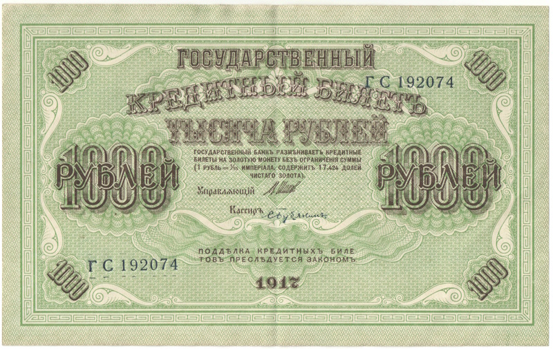 Бона 1000 рублей 1917 года арт 33398 мы доставляем в любую точку России.
