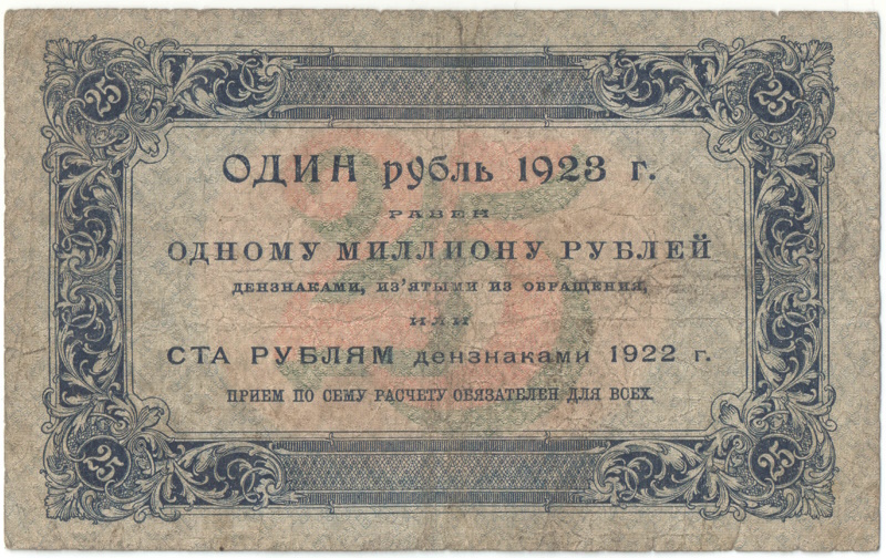 Введены в марте 1923 года в ходе деноминации (новый рубль обменивался на 100 рублей образца 1922), при этом купюры 1922 года продолжали хождение до осени, когда вышли денежные знаки 1923 года нового типа (с изменённой надписью оборотной стороны).