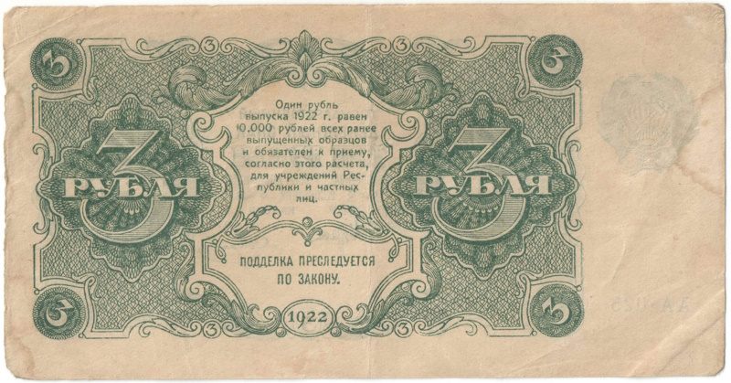 Бона 3 рубля 1922 года арт 33397