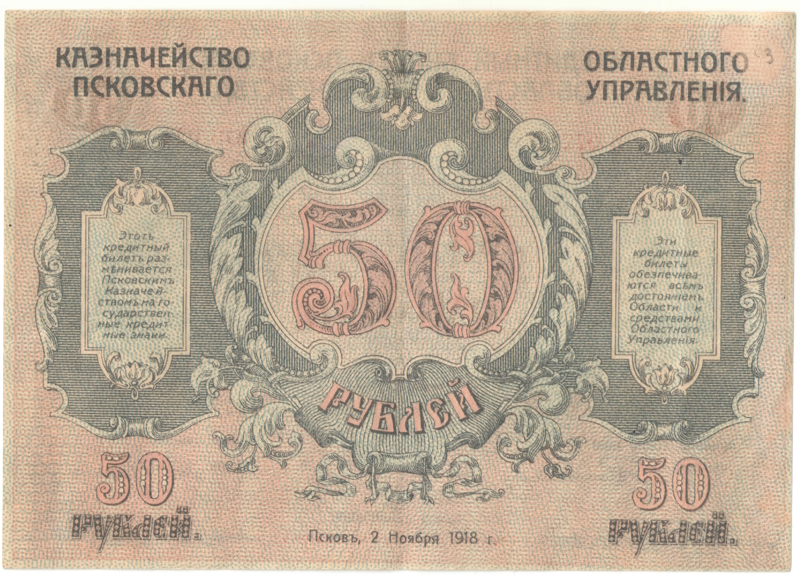 Бона 50 рублей 1918 года Псков арт 33498 мы доставляем в любую точку России.