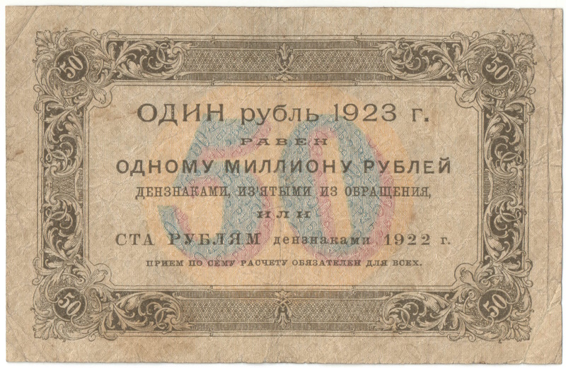 Введены в марте 1923 года в ходе деноминации (новый рубль обменивался на 100 рублей образца 1922), при этом купюры 1922 года продолжали хождение до осени, когда вышли денежные знаки 1923 года нового типа (с изменённой надписью оборотной стороны).