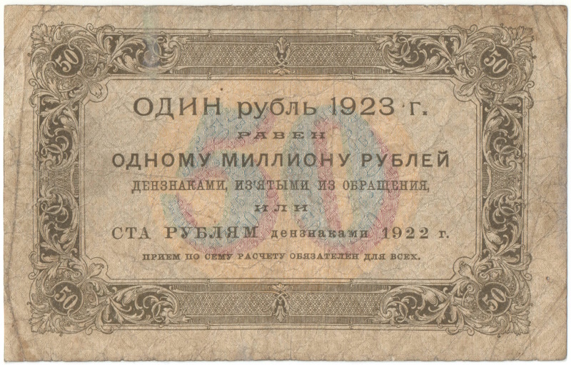 Введены в марте 1923 года в ходе деноминации (новый рубль обменивался на 100 рублей образца 1922), при этом купюры 1922 года продолжали хождение до осени, когда вышли денежные знаки 1923 года нового типа (с изменённой надписью оборотной стороны).