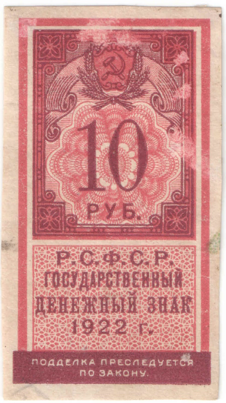 Бона 10 рублей 1922 года (тип гербовой марки) арт 33253