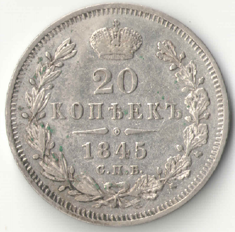 20 копеек 1845 года СПБ-КБ (R) арт 33452