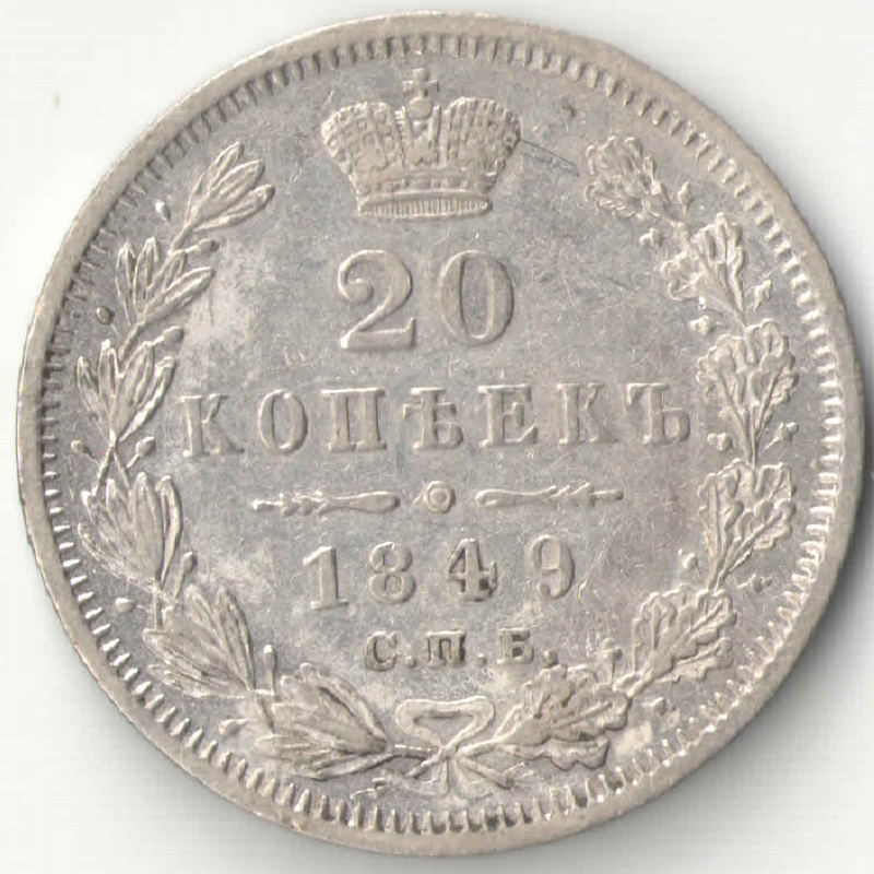 20 копеек 1849 года СПБ-ПА (в плаще) арт 33454